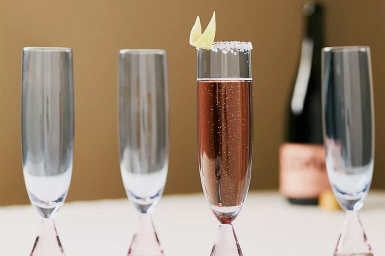 A martini is always fun, but a unique glass makes it even better. We love this one’s cut-glass spherical base, which no doubt reflects light beautifully and will be a showstopper at any party. Handwash these with soapy water to keep them in optimal condition, and choose either iridescent pearl or pink-tinted glasses.