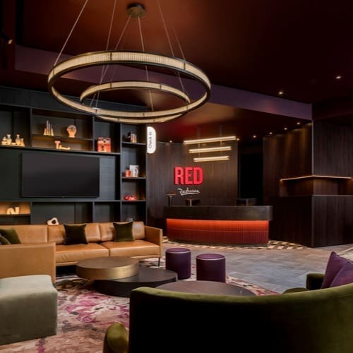 Designed by Design LSM, Radisson RED London Twickenham, features a blend of high design and striking art coupled with Radisson RED’s comfortable beds, amenities and thoughtful extras. Reflective of the hotel’s position as part of the Allianz Stadium, the hotel and The Huddle Restaurant interiors feature nods to rugby and legends of past and present, alongside a rich and sophisticated color palette with deep dark walnut tones and vibrant reds.