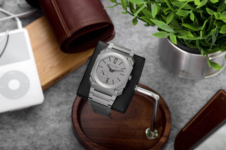Even though Fabrizio took the inspiration from classical octagonal plans of historical treasures like the Basilica of San Vitale and the dome above the tomb of St. Peter, the use of modern material like sandblasted titanium places this watch squarely in the contemporary category. The Octo’s distinctive features, including a geometric bezel, squared-off case, angular lugs, and the seamless integration of the bracelet into the case, further emphasize its contemporary design.
