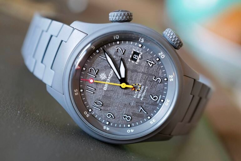 The dial, somewhat confusingly, is not made from a piece of meteorite. The “Meteor” naming convention is actually taken from the Gloster Meteor, the UK’s first fighter jet. The dial has a subtle texture that Bremont says is scanned from a piece of actual meteorite. I’ve seen some comments on Instagram and elsewhere deriding the silliness of this. It is a little silly, or at least kind of on the nose. But the bottom line is that the aesthetic of the watch works, and to put it on your wrist is to understand that it’s a well made thing. The retail price is $6,600, which feels like a lot of money for something with a “scanned” meteorite dial, perhaps because there are few comparison points available. The movement, also, is not exotic. It’s a rebadged La Joux Perret caliber that is not chronometer certified. So, you have to really fall in love with the watch to want to own it at its retail price. As a longtime Bremont skeptic (I’ve never owned one, and never really been tempted) it seems to me this is the bargain you make with yourself for any Bremont (or any luxury watch), even those made in the English brother’s heyday.