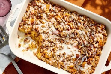 Pumpkin, maple sugar, and warm spices infuse the custard with deep autumn flavor, while a pecan-studded crumble adds crunch and...