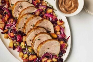Elegant enough for a holiday centerpiece or casual enough for a weeknight dinner, this juicy pork loin is served over...