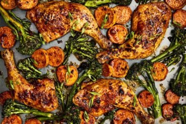 The chicken emerges from the oven juicy and charred with a glossy sweet-spicy glaze. The sweet potatoes become tender and...