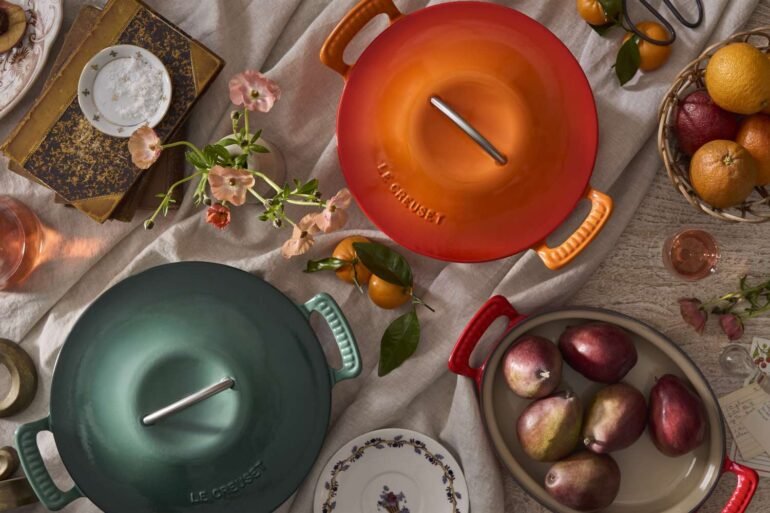 Le Creuset has been crafting top-quality cookware and bakeware for 100 years. To mark its milestone, the iconic French brand just launched the Modern Heritage Collection, an innovative line of cast iron kitchenware that puts a modern twist on some old classics. The new range consists of three familiar favorites — the Le Creuset round Dutch oven, round braiser, and oval gratin — but in ways you’ve never seen them before. Each piece has been reimagined to combine the legendary design elements that make Le Creuset cookware so beloved with fresh features added for an all-new appeal. The straight side handles of the Le Creuset Dutch oven are now upturned and scalloped; the rounded edges of the oval gratin baker are softer and curvier; and a looped stainless steel handle takes the place of a flat knob atop the lid of the Le Creuset braiser.