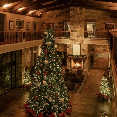 Guests can step into the holiday spirit with Lost Pines Christmas Suites, where every detail creates a merry and bright atmosphere. Each suite features complete festive décor including a beautifully lit Christmas tree and warm seasonal accents. Guests can enjoy hot cocoa by the glow of their private tree, exchange gifts, or simply savor the joy of the season in these specially designed holiday accommodations that provide a magical backdrop for family celebrations. - Cozy Christmas Cabanas – Available throughout December