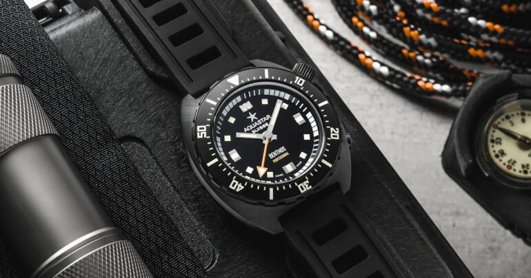 Timekeeping is managed by an old friend, the ETA 2824-2 in elabore grade offering time (but no date, and no phantom crown position) along with a rate of 4 Hz and a power reserve of 38 hours. This is the same movement used by hundreds of brands over the past couple of decades, and it has been used in past models by Aquastar. It’s simple, reliable, easily serviced, and capable of considerable accuracy.