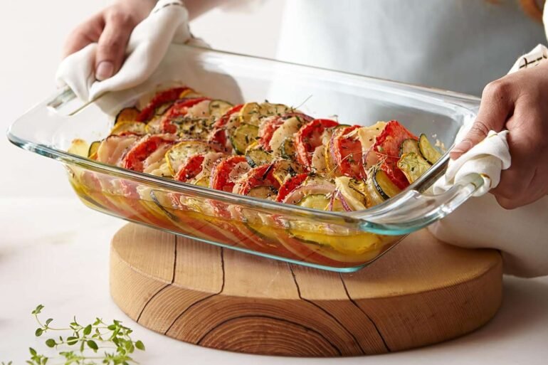 This 3-quart OXO casserole dish made with borosilicate glass can go from the freezer to the oven without any issues, and it’s also microwave- and dishwasher-safe. It comes with a lid for easy transport or storage, and it won’t stain or hang on to odors, even after storing marinara sauce. The dish is sturdy, affordable, and suited for casseroles and lemon bars alike.