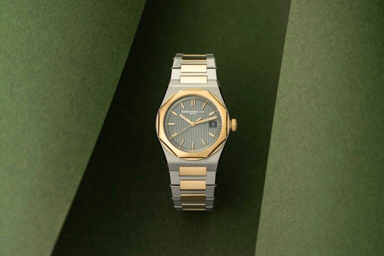 The first Laureato entered Girard-Perregaux’s catalog in 1975. The model was modestly sized by today’s standards and was even rather mid-sized for the era with a case measuring just 36mm (by comparison, the first Royal Oak began to set the tone for more oversized watches clocking in at 39mm, but was considered notably large and given the nickname “Jumbo”). The 1975 Laureato featured a two-tone construction, highlighting its mix of curves and geometric shapes. The design echoed Genta’s but with softer edges and a slightly more elevated look thanks to the addition of yellow gold elements combined with stainless steel. In line with the times, the model housed a quartz caliber, but not just any quartz caliber – it was COSC-certified.