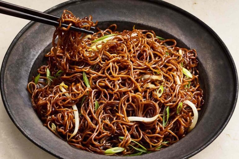 Chef Melissa King created these umami-packed, 30-minute noodles as a nod to garlicky Vietnamese noodles and Cantonese-style see yow wong chow mein. King’s version in Cook Like a King features chewy and lightly crisped noodles that are tossed in an ultra-savory combination of soy sauce, oyster sauce, and Maggi seasoning. The thin Chinese egg noodles readily absorb the sauce while simultaneously crisping and browning in spots as they’re stir-fried. Lean on fresh noodles, which tend to crisp and retain their chewiness when stir-fried better than dried noodles — if you can’t find thin Chinese egg noodles, thicker Shanghai noodles or even Japanese ramen will also be delicious.
