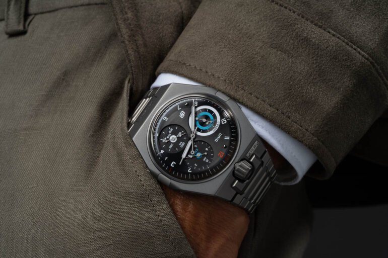 In addition to being a singular conversation piece, it’s also just a great watch to wear. The 45.5mm case is crafted from sandblasted titanium and mounted to an integrated bracelet that hides a lot of that diameter measurement. The UR-10 is very thin, measuring just a little over 7mm tall, excluding the crystal. The watch is available in two dial options, brushed titanium and black, both limited to 25 pieces. The retail price is set at $94,000.