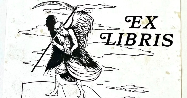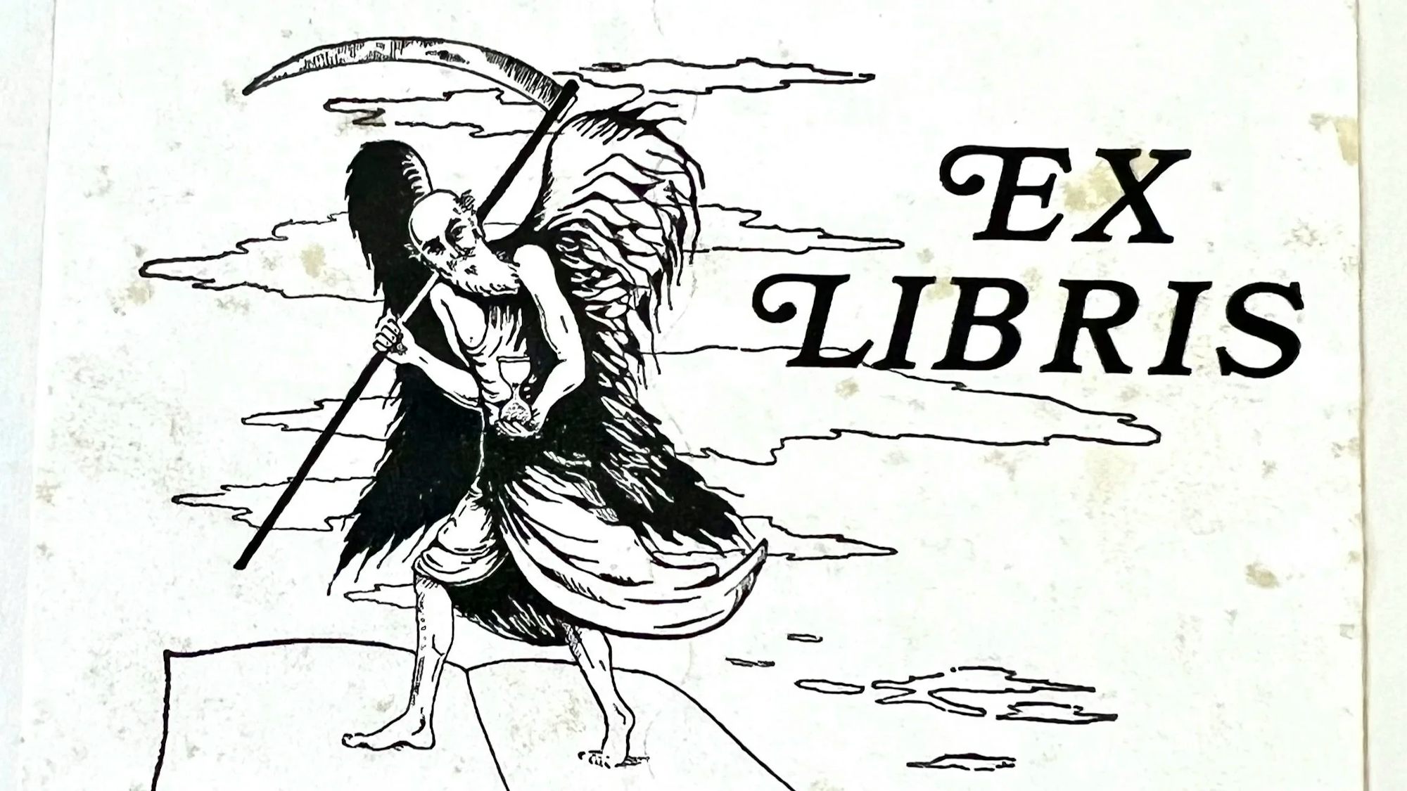 Parsell commissioned Jay Chambers, a well-known graphic artist and illustrator of the time, to design this bookplate–he was one of the three partners at the Triptych Designers of New York, named in the signature at bottom right. This bookplate is remarkably detailed and personal, even compared to others in our collection. I feel I know a little bit about the adventurous Mr. Parsell, and I would like to know more, because he seems like an eclectic character, to put it mildly. More than that, though, I think this bookplate encapsulates the joy of our library collection as a whole: eccentric, multifaceted, varied, and strange.