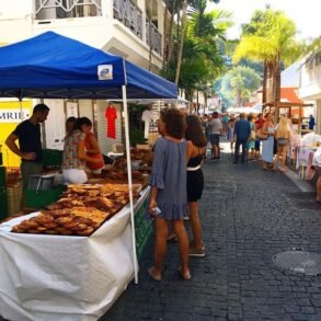 accras to nibble, a citrus-and-herb marinade, grilled plantains, maybe a mango tart if you’ve timed it right.