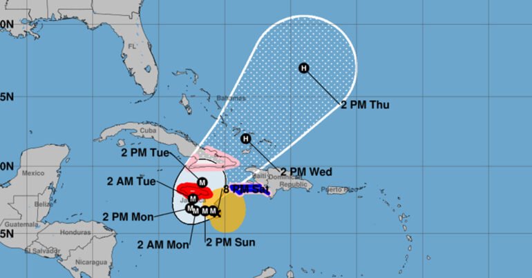 The NHC said that “life threatening and catastrophic flash flooding and landslides were expected” in portions of both Hispaniola and Jamaica into early next week.