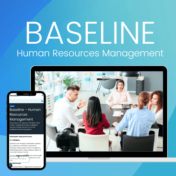 If you’re an HR manager, training leader, or aspiring to lead people and culture functions in hospitality, this course is your benchmark. The Baseline – Human Resources Management certification assesses your expertise across the core pillars of hotel HR: recruitment, compliance, employee relations, performance management, and training.