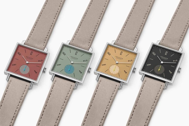 The Tetra, for those unaware, is probably the most under the radar Nomos watch. It has a square case and is most often found in smaller sizes. The new watches seen here, which Nomos is calling the Tetra Origins collection, all measure 29.5mm across and have a case height of just 6.5mm.