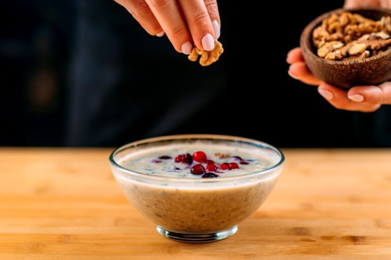 Other nuts also have this “morning effect” when eaten for breakfast because they supply protein, healthy fats, and fiber, which can help you feel full; however, walnuts are exceptionally distinct because they contain higher levels of omega-3s and polyphenols than other nuts, making them a valuable resource for cognitive health, Bianchini says.