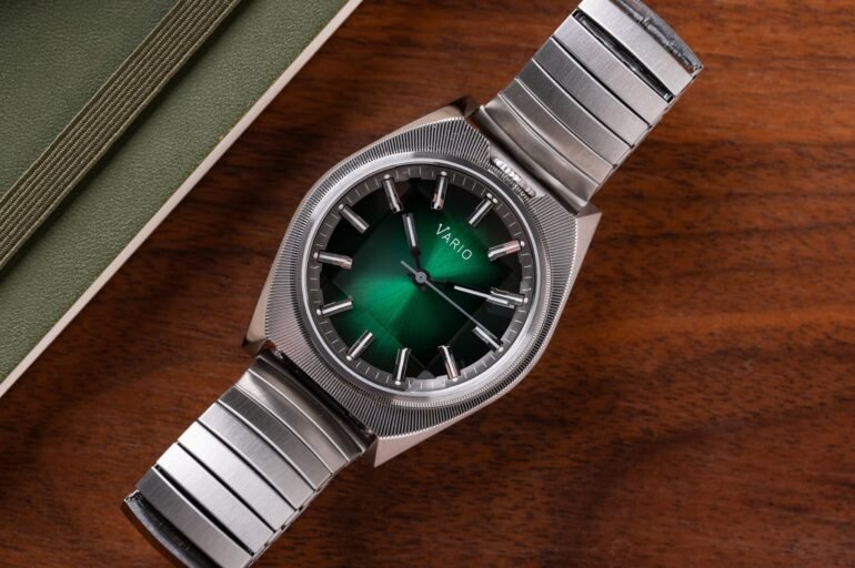 Admittedly, Vario wasn’t on my radar before this watch popped onto my desk. Sometimes, that’s a good thing. It removes preconceived notions and allows you to approach something with no inherent bias. I really enjoyed the approach to 1970s design queues without feeling forced. Each element of the watch is constructed skillfully and tastefully. I enjoyed the finishing techniques used, especially the machined lines on the top surface of the case. In my humble opinion, the $650 price tag is justified. There’s a lot to like about the watch and it’s clear that Vario approached this with a tasteful eye. The subtle nods to the past, which ironically were looking at the future results in an interesting and engaging timepiece. The Vario Futurist is now available directly from the brand. You can choose from the green seen here, or from the silver, red, or blue variants. Let us know how you feel about the watch in the comments below — too much retro-futurism, or just right?