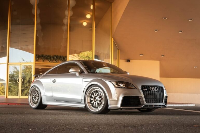 His current ride could be considered the pinnacle of that natural progression. A 2013 Audi TT RS Plus in Monza Silver Pearl and sporting a 6-speed manual transmission, Audi’s Haldex all-wheel drive system, and a 2.5L turbocharged 5-cylinder engine, Joey’s chariot (my words, not his) harkens back to those earlier days of the boyhood modscene, albeit with a much subtler twist. The low-slung coupe is stanced on KV V1 coilovers, with crisp silver 19-inch BBS wheels and a list of other suspension modifications that would make any enthusiast drool, including various parts from 034 Motorsports, and European-spec headlights, tail lights, and rear fog lamps. “I’m a Volkswagen enthusiast so it’s only natural that I’d own a tarted-up Golf,” Joey says with a laugh. “Hot VW and Lowrider magazines were a staple on the coffee table.”