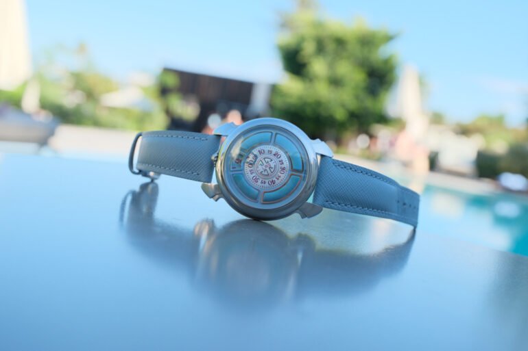 I took the Gagà Laboratorio Labormatic Azzurro with me on a recent holiday to Rhodes to see how it would fare in a real-world setting. It’s not the kind of watch I usually reach for, as its design is bolder and more stylized than my day-to-day choices, but that was part of the appeal. I was curious to see how I’d fare with it over a whole week, wearing it in a different environment and letting it settle naturally into my routine.
