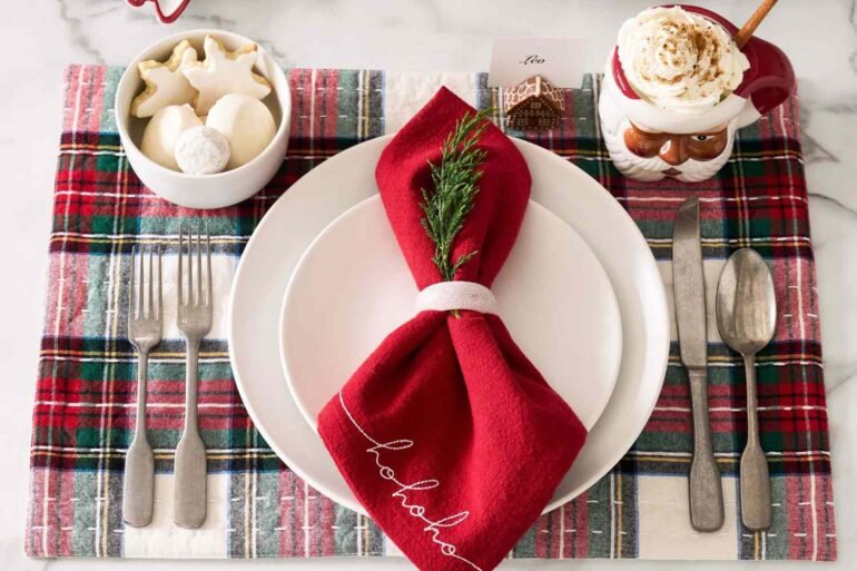 - Host a Pottery Barn Christmas: Stewart Plaid Quilted Cotton Placemats, Set of 4, $51, originally $72
