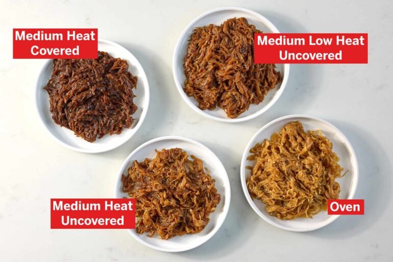 We tasked the Food & Wine test kitchen with testing a variety of methods, including cooking uncovered over medium heat, covered over medium heat, uncovered over medium-low heat, and baking in the oven. Read on to learn what testers found to be the best, most consistent, and quickest method for perfect caramelized onions.