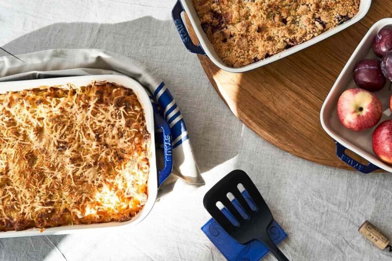 “For frittatas, baked pastas, and cornbread, enameled cast iron from Le Creuset is hard to beat. It goes from stovetop to oven to table and looks good doing it.” – Marissa Stevens, recipe developer and founder, Pinch and Swirl
