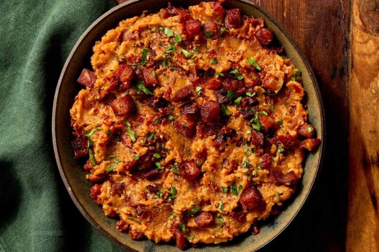Smooth, creamy mashed potatoes will always be a beloved and classic side dish, but these bold, smoky mashed potatoes from Alex Raij, chef-owner of Basque restaurant Txikito in New York, are a welcome change of pace. The dish features two of Spain’s prized ingredients — serrano ham and pimentón de la Vera — for a deeply savory side that pairs well with a variety of mains, from garlicky roasted chicken to rosemary-tinged grilled lamb and peppercorn-encrusted beef.