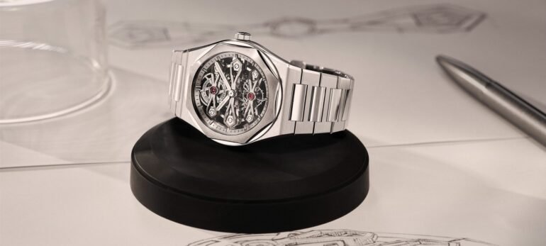 Just last month, Girard-Perregaux shared a two-tone reissue of the original Laureato, called the Fifty. It was a well-received release, even if it was a bit expensive. Today’s releases certainly won’t represent a move down the price ladder, but they’re interesting nonetheless. The new stainless steel Laureato Three Gold Bridges adds a white gold octagonal bezel and a fully skeletonized dial. The 41mm watch has an 11.25mm profile and a 30m water resistance rating.