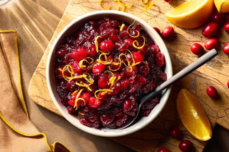 • Finely chopped orange zest brightens the relish with citrus fragrance, giving it a fresh lift that complements rich holiday dishes.