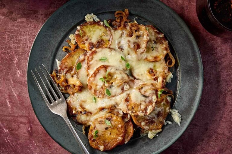 - The flavor balance between buttery potatoes, caramelized onions, and nutty cheese is deeply savory yet brightened by sherry and thyme.
