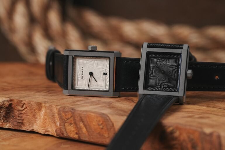 The latest release from echo/neutra, the Rivanera Piccolo, further cements them as one of the most interesting design forward, affordable indies out there at the moment. A sequel of sorts, the Rivanera Piccolo continues to riff on the original’s rectangular shape, but dares to make it smaller, squarer, and, somehow, sportier. If the Rivanera was a new spin on designs like the Cartier Tank and early Art Deco, the Piccolo jumps a few decades ahead – there’s some distinctly 1960s/70s funk here in a way that I haven’t seen presented in a watch of this type. It places itself right in the middle of the current “stone dials on everything” trend without actually including a stone dial.