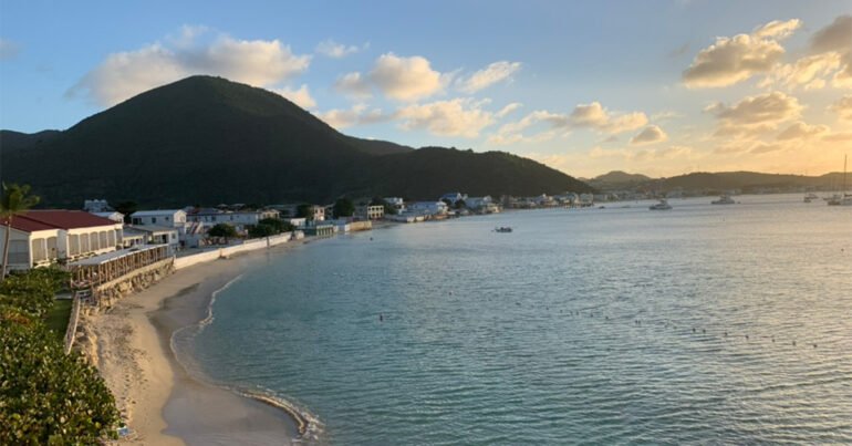 Grand Case is one of those rare Caribbean villages that instantly pulls you in. It begins with the curve of the bay, a sweep of pale sand tucked beneath bright cottages and French-Caribbean rooftops. The water is calm, lightly rippled, impossibly clear. Fishing boats drift just offshore. By late afternoon the light deepens, turning the village golden, and everything feels close, intimate, walkable.