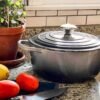 This is one of our favorite Le Creuset pieces for dishes that require shallow cooking, like frying chicken cutlets or making risotto. The rounded sides make it easy to get into corners, allowing you to incorporate ingredients more easily.
