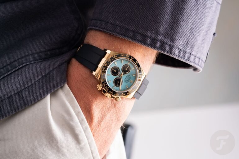 My last pick is the glorious turquoise-dial Rolex Daytona ref. 126518LN, which was introduced during Watches and Wonders this year. For a Daytona to make my list is already quite exceptional. However, it being a yellow gold Daytona with a black bezel on an Oysterflex bracelet makes it even more special. When it comes to precious-metal Daytonas, I would typically choose the full-gold versions, which feature a gold bracelet and gold bezel. However, when I had the opportunity to try the new gold Rolex Daytona models beyond first impressions, this is the one I kept coming back to.