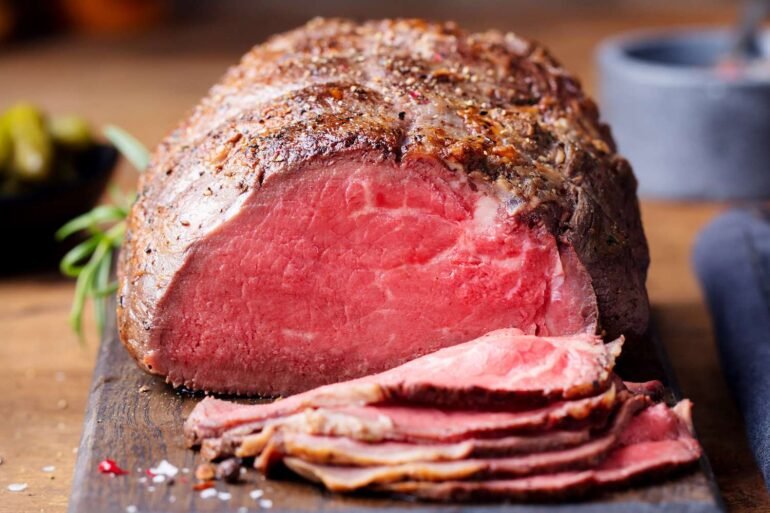 “It’s essential to have a generous fat cap to maintain juiciness and then sear the roast on all sides before cooking,” says Steve Sabicer, a former butcher who runs the Enlightened Omnivore newsletter. “Then put it in the oven at 250°F for a slow finish. This offers the largest pink center with plenty of flavor on the outside.”