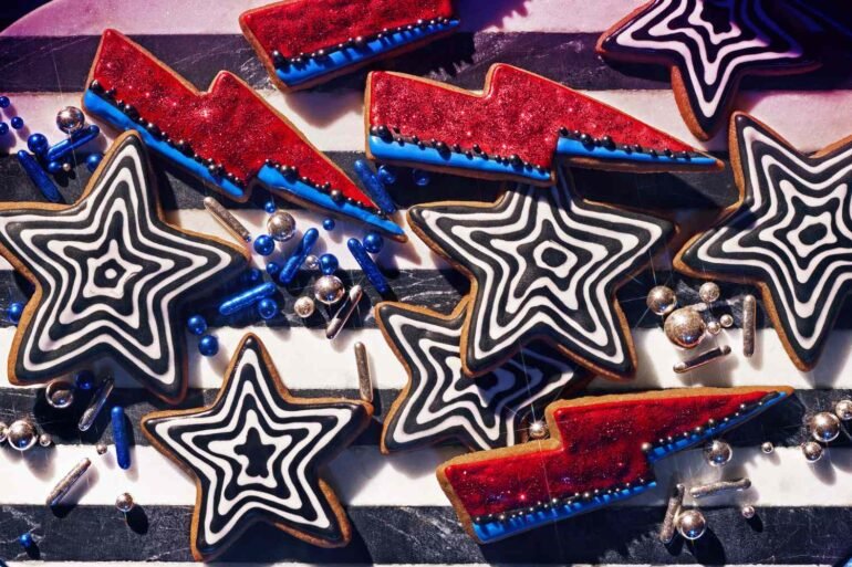 These cookies depart from traditional European speculoos in their royal-icing decoration. This royal icing recipe uses meringue powder instead of raw egg whites, making the icing more stable yet still easy to work with. Pipe outlines and details, then thin the icing slightly to flood. The cookies dry to a smooth, professional finish. Even shaky piping will shine under a coat of sanding sugar. A single icing shade feels minimal and chic, while swirls of color and a dusting of luster dust create a night-sky effect. Bake and decorate the cookies ahead, then package them for holiday gifts or a cookie box.