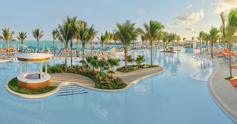 Additional features will include a nearly 800-foot dynamic river, a 9,000-square-foot splash zone for kids, and Cliffside Cove, which will introduce cliffside jumps and racer slides — a first for a cruise-line private island.