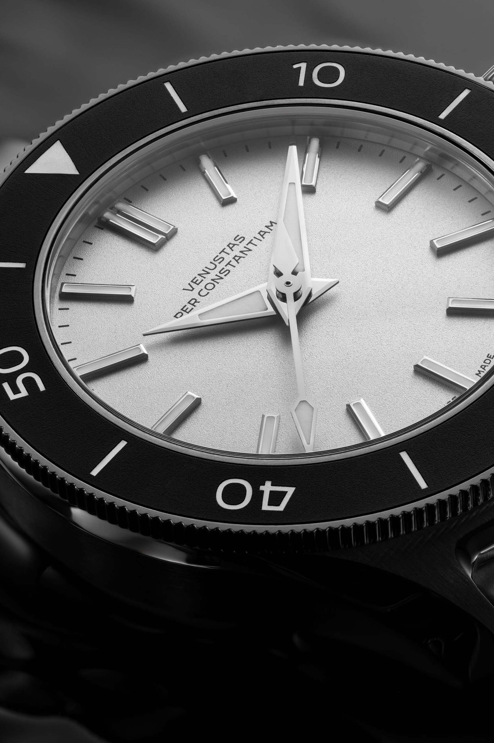 Speaking of the bezel markings, Thomas worked with Samuel Baker again to create the typography for the new diver. Samuel developed the brand’s Venustas typeface that graces the upper part of the dials. For this new dive watch, he also created an adaptation that perfectly suits the tool-watch nature of the Type 39VM. The biggest challenges he had to tackle were achieving optimal legibility and creating numerals suitable for rendering on a circular plane. Barker optimized the spacing between the numerals and decided to lose the serifs. As a result, the numerals look clean and easy to read while maintaining a connection to the wordmark on the dial.