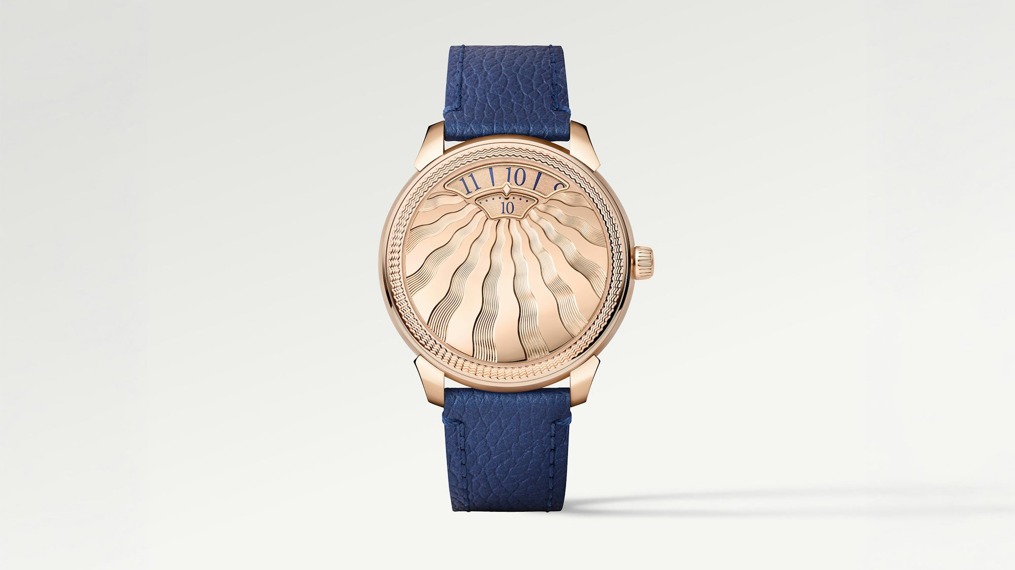 Guilloché is, of course, the specialized craft of engraving intricate, repetitive geometric patterns on watch dials, cases, and components using hand-operated machines. In the case of LV, they use a rose engine machine that dates back to the 1850s and took more than a year to restore.