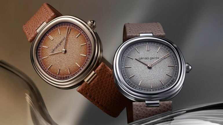 More successful in my view is the introduction of the Gerald Genta Geneva Time Only ‘Marrone’ and ‘Grafite’ references, follow ups to Geneva Minute Repeater released a year ago. These watches, as time only pieces, are obviously much simpler while sharing a similar aesthetic. The Gerald Genta brand is tough to wrap your arms around unless you have a deep familiarity with the designer beyond his most iconic pieces. The stated goal of the brand as it exists today in the LVMH portfolio is to explore the design language of the Genta’s later years, which were frankly much more daring than the integrated bracelet sports watches he’s most well known for. The Geneva case design has a ton of charm, coming in at 38mm with a cushion shape and a single lug on each end. The dials are heavily textured, with the ‘Grafite’ paired to a white gold case and the ‘Marrone’ in rose gold. They run on Zenith Elite movements, which some are already criticising given the CHF 25,000 starting price.