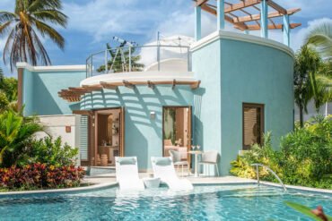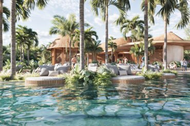 You step out of your bedroom and straight into water. Not a shared pool, not a view — actual swim-up...