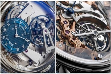 RGM uses both the 921 and 923 calibers for the Model 222-RR. The first was made in large numbers and has 21 jewels, but the 23-jewel version is much rarer, with only 4,000 examples ever produced. Both manual-winding movements operate at 18,000 vibrations per hour and offer a 45-hour power reserve. The watch I tried featured the 923 caliber, containing beautiful blued screws and circular damaskeening (the American term for Geneva stripes). This finish makes the vintage caliber look beautiful, and it is a joy to behold through the case back’s sapphire display.