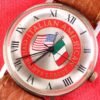 There’s a lot of text on the dial, with ‘LE FORBAN’ (which translates to ‘outlaw’ or, in a seafaring context, ‘pirate’) on top, with a rather generic anchor logo below. Then we’ve got ‘SECURITE MER’ – ‘Maritime Security’?? Weird and cool, I say. Below the handset is the Marseillaise model name in script, perched above the bleu, blanc et rouge colors of the French flag. Finally, we’re reminded of the 250 meters of water resistance to hammer home the diver’s functionality.