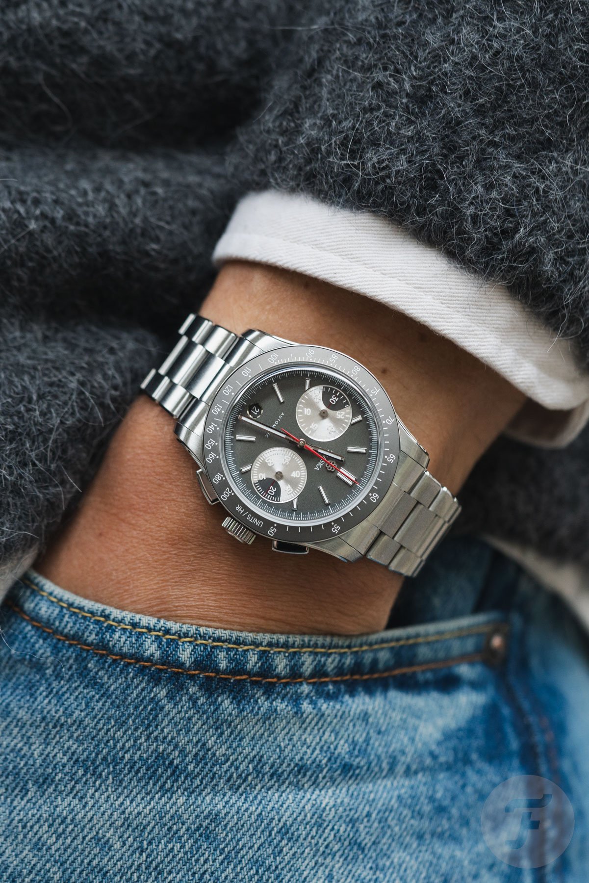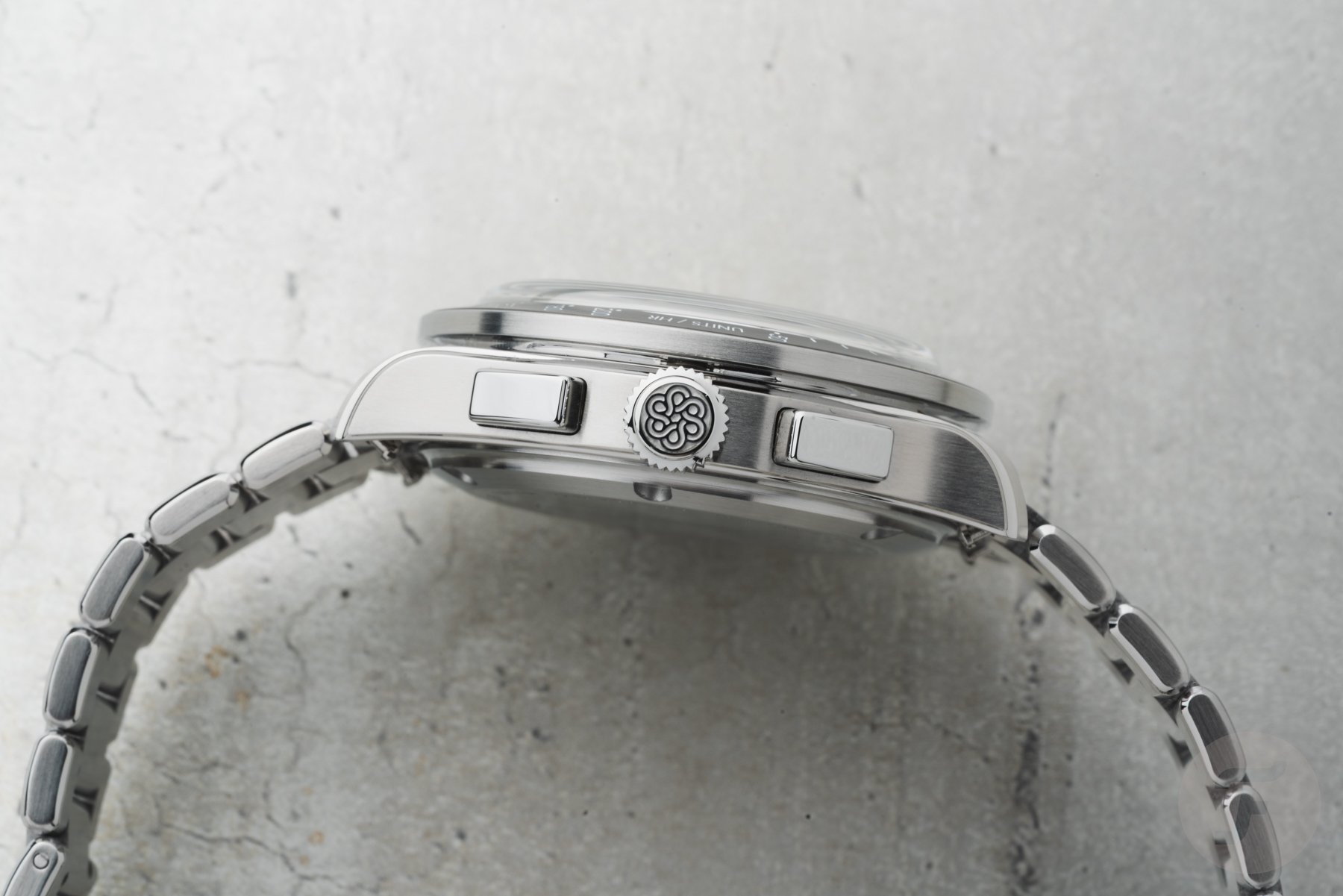 A closer look at the case and bracelet also reveals an improved level of finishing. While the finishing of the Commuter and Venturer was already impressive at their respective price points, Traska upped the game for this new Chronograph. The mix of polished and brushed surfaces adds significant visual detail, making the watch look like a proper luxury piece that competes with models far above its US$1,695 price point. Two of those beautifully finished elements are the rectangular pushers, which immediately give the watch a contemporary relevance compared to pump-style pushers.