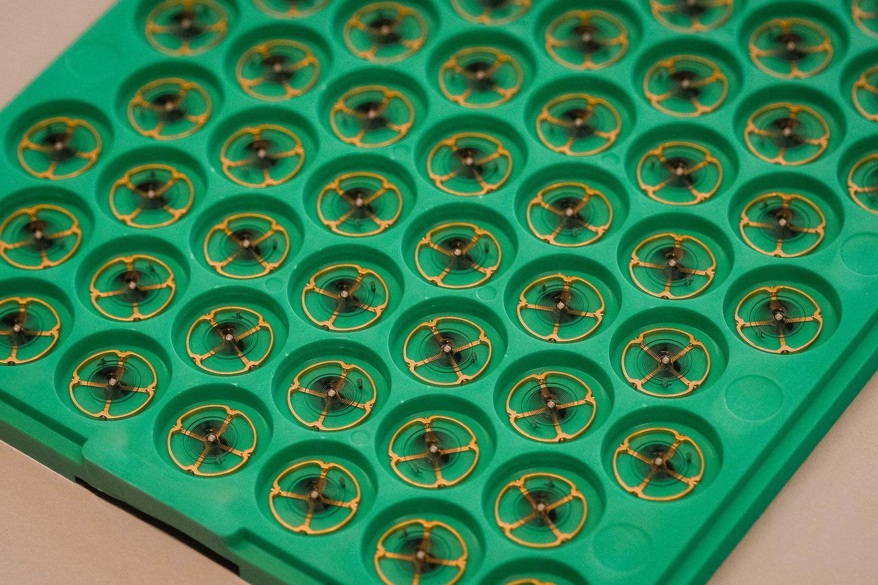 After hardening, each spring is carefully separated and readied for integration. An automated system then matches the hairspring with a balance wheel, fine-tuning the assembly for optimal rate stability. The variable-inertia balance enables highly accurate adjustment, which enables dependable performance.