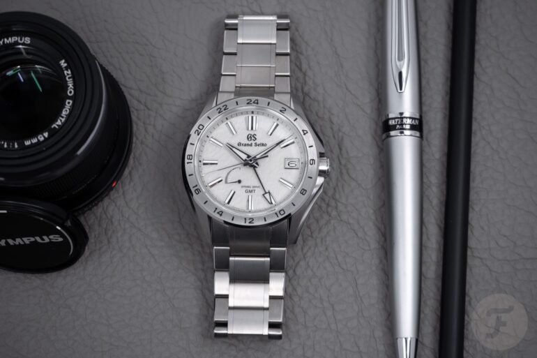 There are two main reasons. First, Grand Seiko uses lightweight titanium for the Mist Flake, which makes it super easy to wear. Additionally, the watch is part of the brand’s Evolution 9 series, which features modern, beautifully sculpted cases that sit remarkably well on the wrist. As a result, the SBGE285 is a wonderful modern GMT.