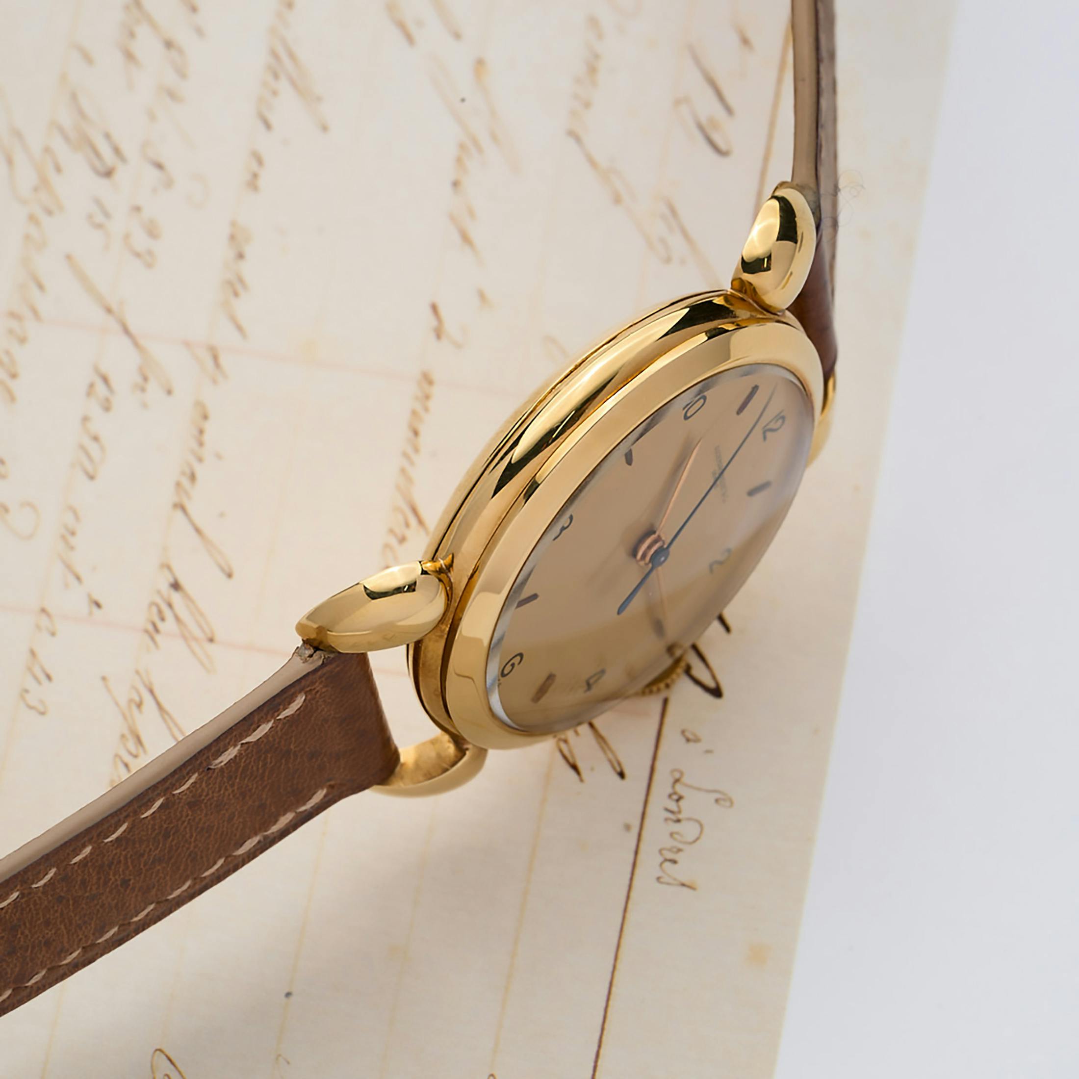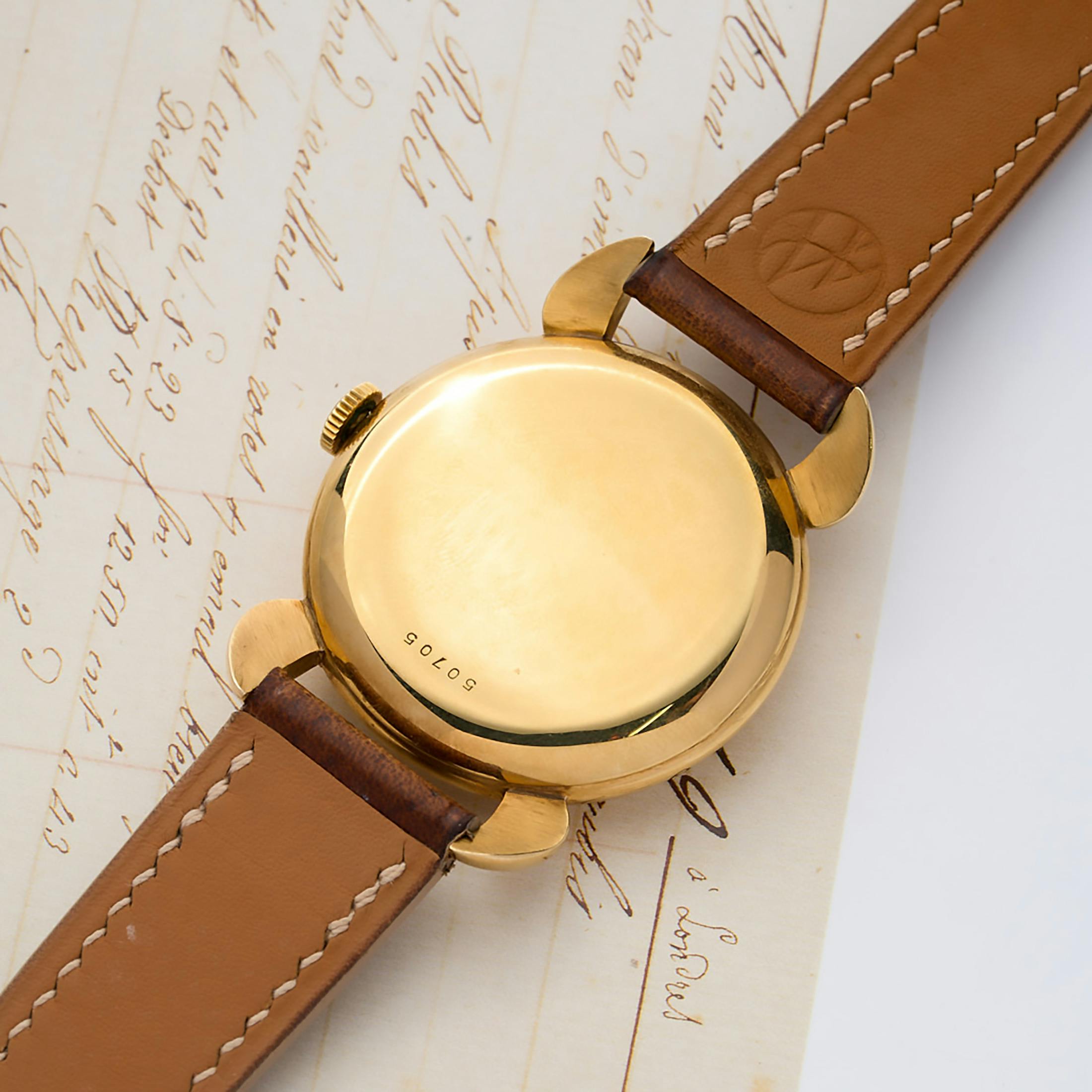 But say you’re not someone seduced by legendary movements? In that case, maybe you can be tempted by the fact that the case of this watch was made by Jeanneret, a detail gleanable from the hammerhead 166 mark on the case back. Though I am wildly unqualified to serve as Sherpa regarding the esoterica of Swiss case hallmarks, here’s what Marcus Siems or Goldammer has to say about Jeanneret cases: “We can find two main trajectories for Jeanneret-made cases – intricate chronograph with angled lugs (Universal Geneve) and dressier Art Deco pieces with hooded lugs (Vacheron Constantin) – in both ways the detailed work on the lugs is the feature to keep an eye out for.”