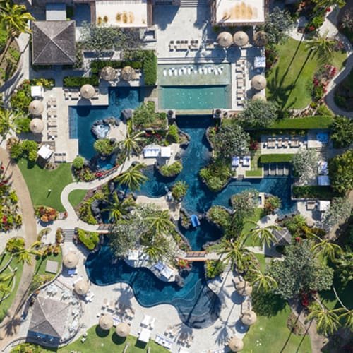 - Several extraordinary outdoor pools, including a multi‐tiered, cascading lagoon pool