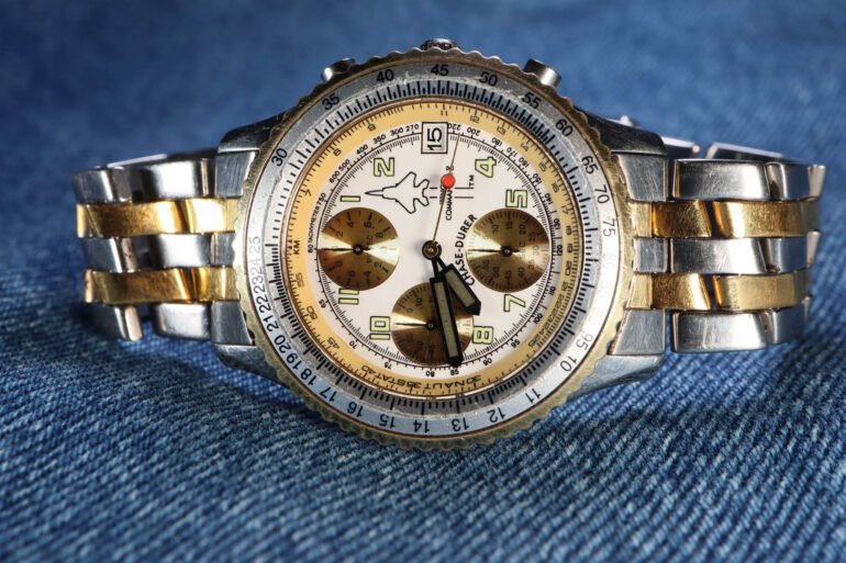 My example’s handset exhibits the crumbing remnants of luminescent material barely hanging on for dear life. As you could imagine, it no longer glows like it did from the factory, but I appreciate the way it looks with the lights on and how the darkened green plays off the silver and gold dominating the watch’s aesthetics. Speaking of, I know not everyone is a two-tone fan, but I will always be a firm believer that some watches look great with it. The use of both steel and gold here is incredibly emblematic of the time period in which this watch was designed. The two-tone bracelet the watch is fitted on also feels wonderful on the wrist, contouring seamlessly without nipping any hairs with continuous wear.