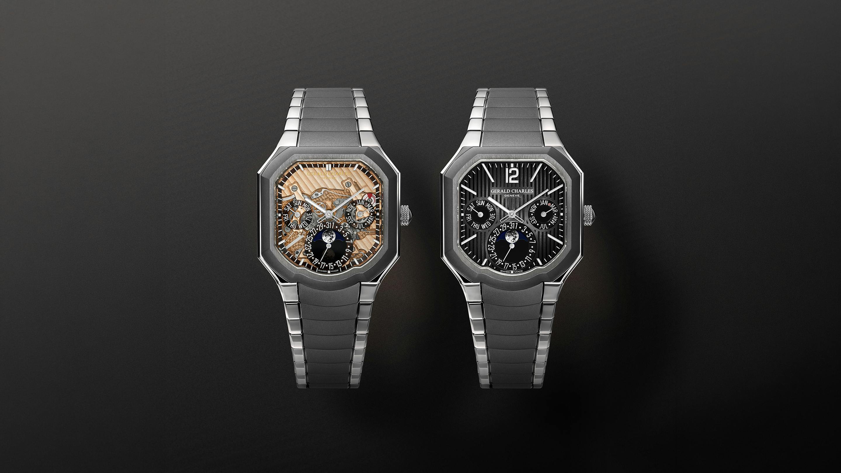 The watch comes with two dial options: an anthracite grey dial with a two-level construction and vertical sunburst finishing with degradé colour, or an open-worked sapphire dial. If you spend a lot of time in Geneva, you might recognize the city’s outline on the caseback—the mainplate and bridges are shaped, arranged, and finished to reflect the brand’s home city’s geography.